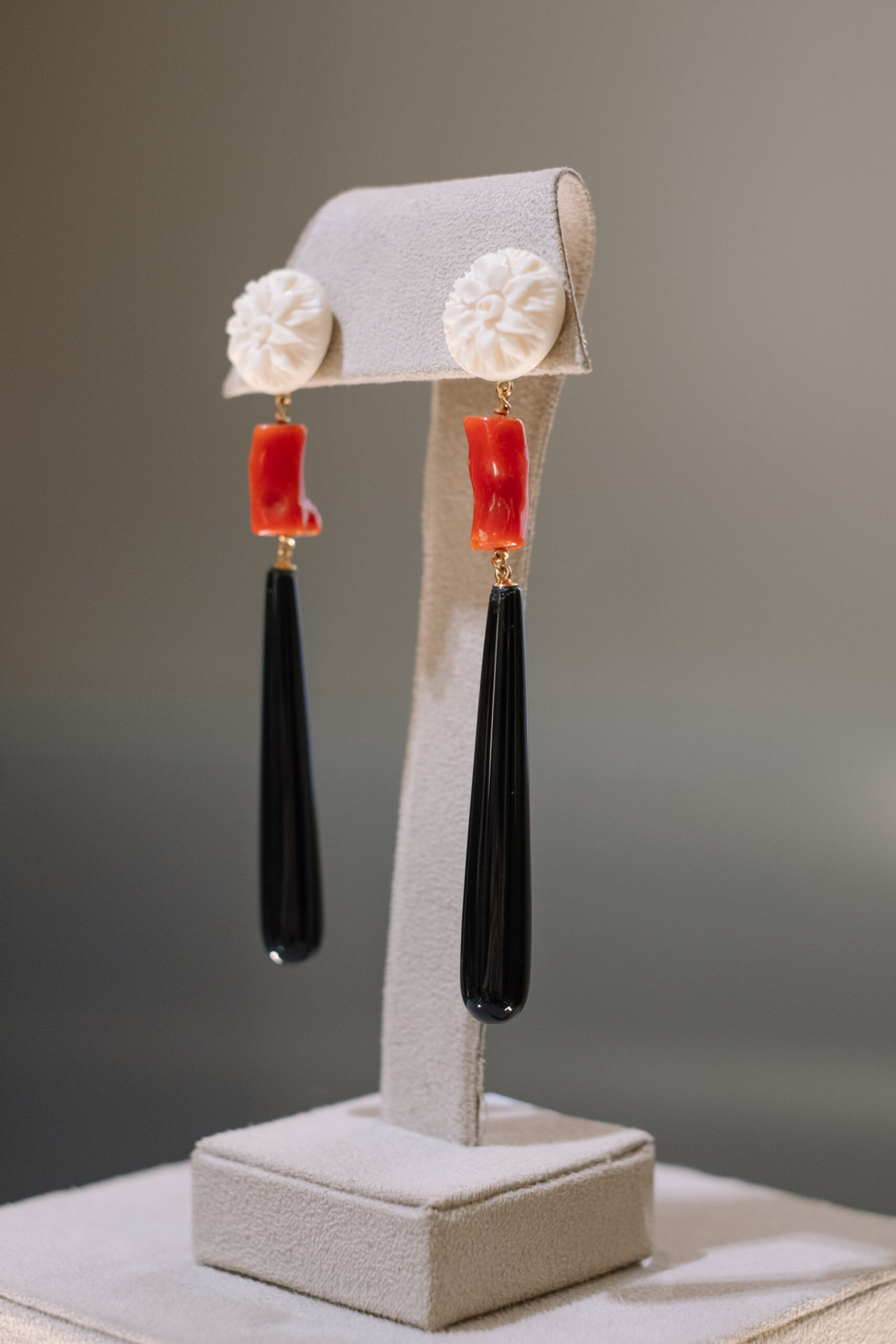 Desde pendientes de coral combinados con diamantes, sortijas de cabujón montadas en oro amarillo y combinadas con piedras preciosas o collares que mezclan coral con perlas o piezas de ónix.