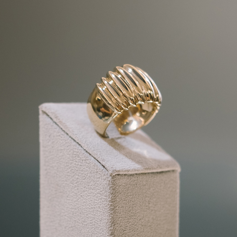 Sortija de oro amarillo de 18k, modelo gallonado.