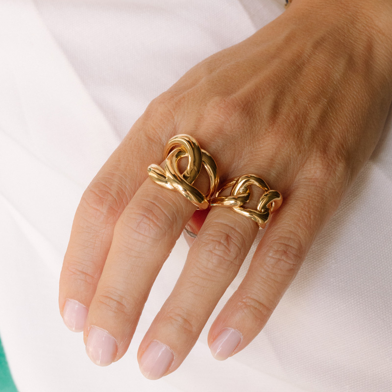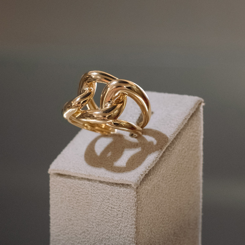 Sortija de oro amarillo de 18k, motivo nudo barbado.